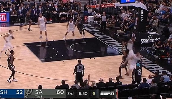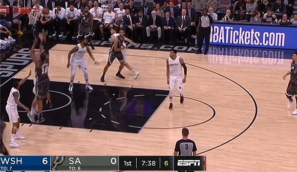 慢,节奏是真的慢,比赛从开始第一节,进行到三分钟过后,两队比赛才只是奇才队2比0,进行到四分钟时,同样两队总分也才6分,知道首节比赛进行到四分半钟的时候,马刺队才由阿尔德里奇通过中投完成得分。