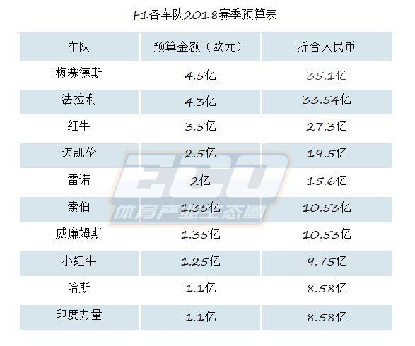 近日,一份F1的2018年赛季预算表出炉,其中,梅赛德斯车队继续蝉联头名。新赛季,梅赛德斯将预计支出4.5亿欧元,约合人民币35亿元,力压其他一众豪强。