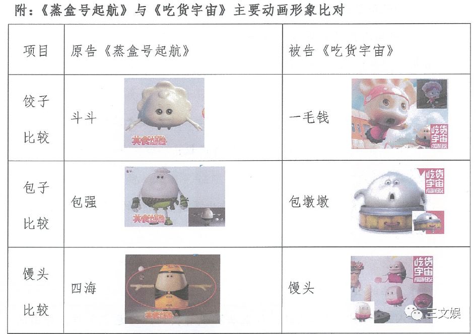 在案件二(南京案件)的一审判决中,法院分别从电影名称、角色形象及情节等方面对《蒸盒号起航》和《吃货宇宙》进行比较,最终亦认定两者不构成“实质性相似”,从而驳回了蓝色的海的诉求。