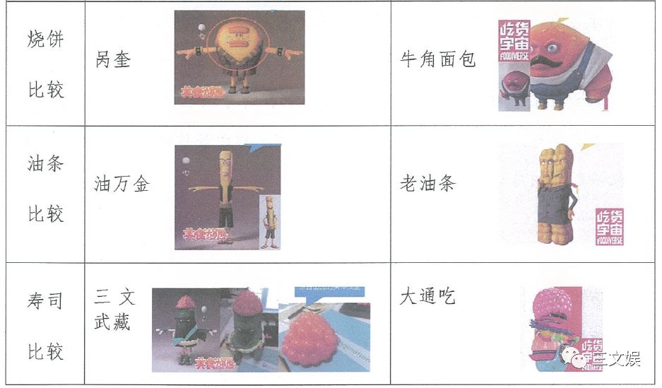 以《美食大冒险》与《吃货宇宙》为例,两者虽然都是将主食拟人化进行作品创作,但是在排除这些主食的基本样子后,两者在主角的形象设计上各自分别具有独创性,因而双方各自分别享有著作权。【具体说明见下文】