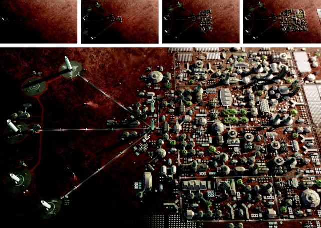基地最初可能只是一艘飞船,然后是多艘飞船,接着开始建造城市,并不断扩大城市。随着时间的推移,我们将改造火星,并使之成为适合生存的地方。