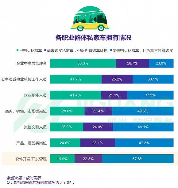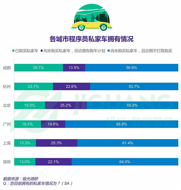不光住房自有率最高,成都程序员29.7%的私家车拥有率也力压北上广深杭25.3%的上海受访程序员表示,虽然我现在没有私家车,但我有一颗想买的心广州程序员荣膺最不想买车群体第一名