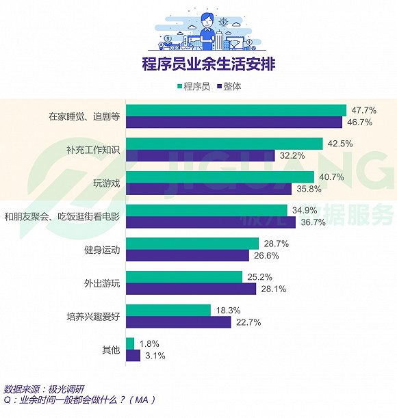 补充工作知识和玩游戏是程序员群体在业余生活安排上区别于其他群体的特征