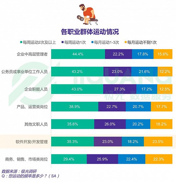 程序员是宅男集中地,约1/4的程序员每月运动次数不到一次,比例高于其他职业群体