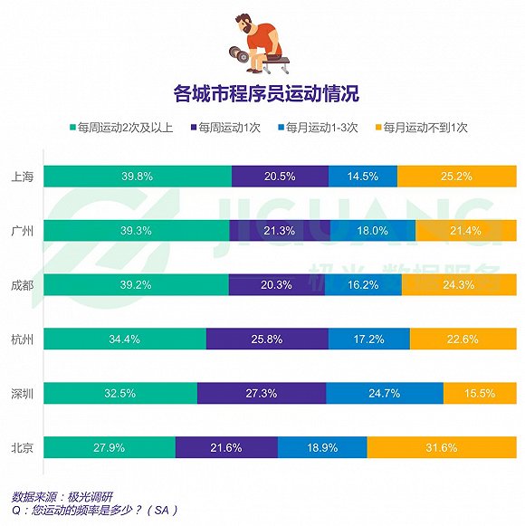 首都程序员最不爱运动?北京程序员运动频率在所调查城市中最低