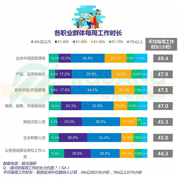 工作辛苦不是传说,每周工作时间不到40小时的比例最低,超三成程序员每周工作50小时以上