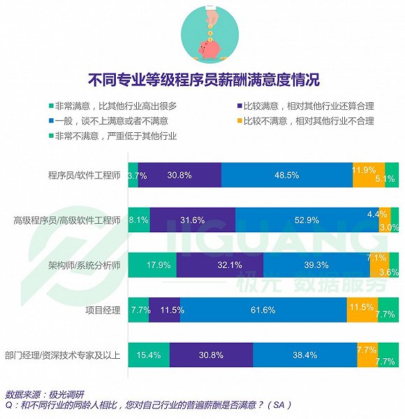 架构师/系统分析师专业等级程序员对目前的行业薪酬满意度较高