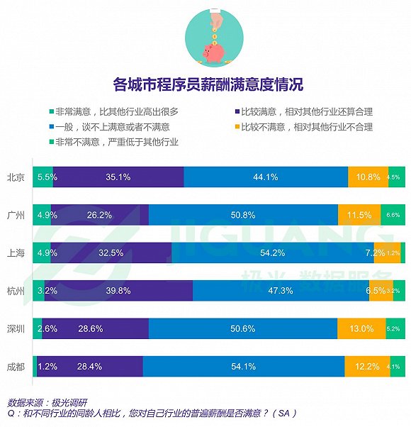 同为非一线城市,杭州程序员薪酬满意度较高,成都则较低