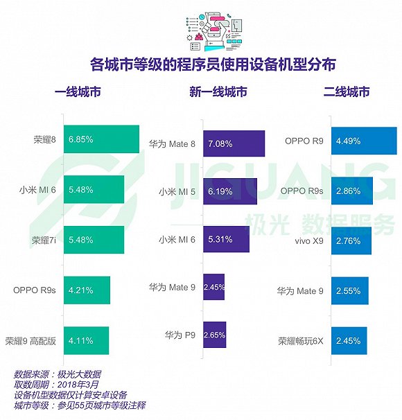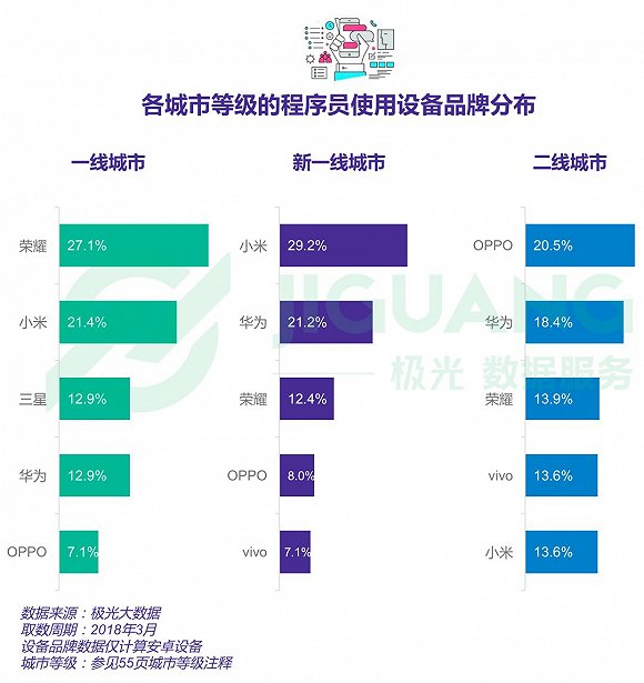 一线城市程序员爱荣耀,新一线城市程序员爱小米