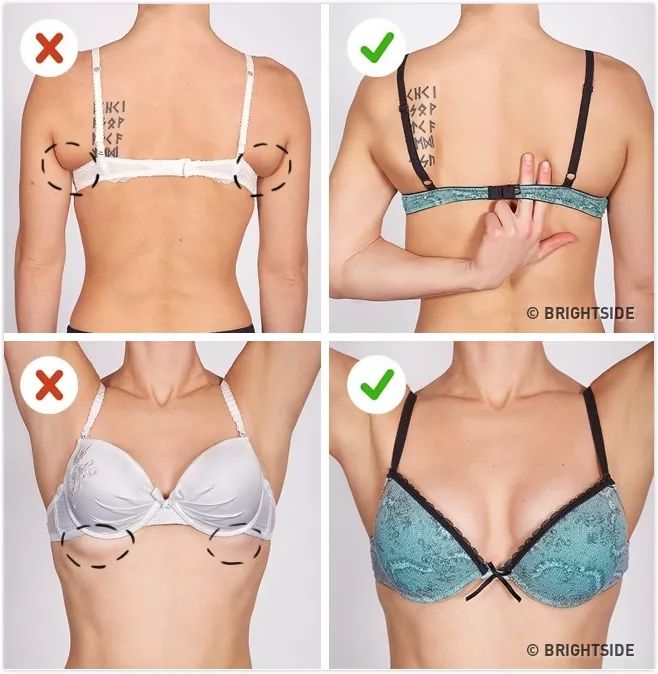 ▲适合你的内衣应该是两侧及后背没有明显压迫感(更不会勒出痕迹),从正面看可以正好包裹过胸部而不会产生空杯or挤压现象。