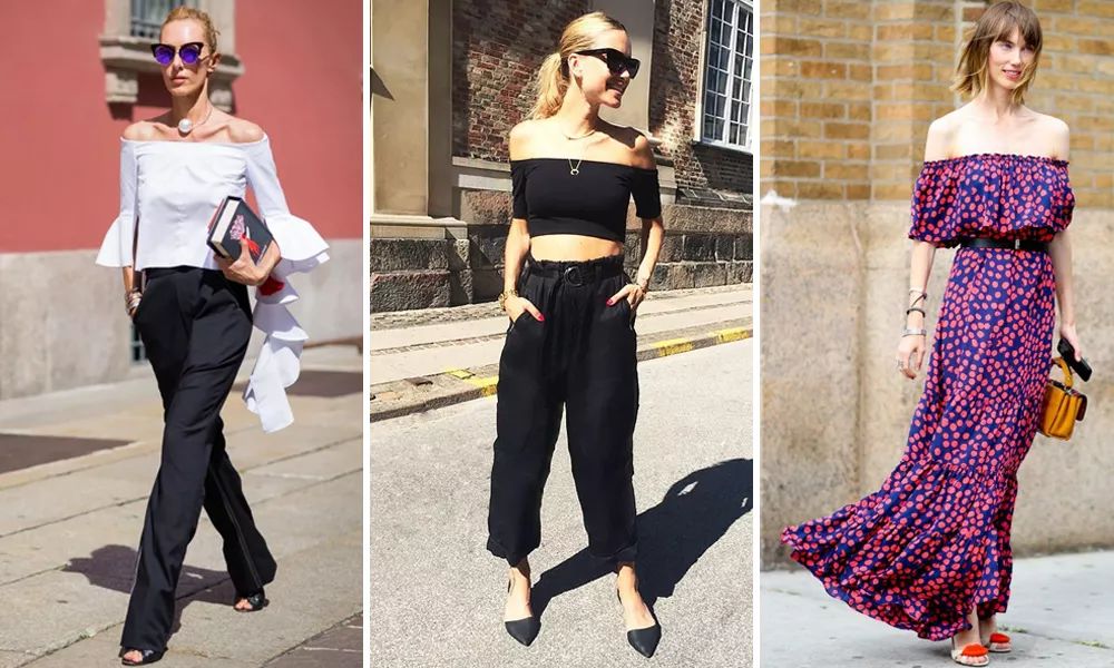 Miss烧饼第一反应到的是抹胸,它呢基本可以搞定夏日的所有美搭:斜肩、挖肩、一字领等各路花式露肩。