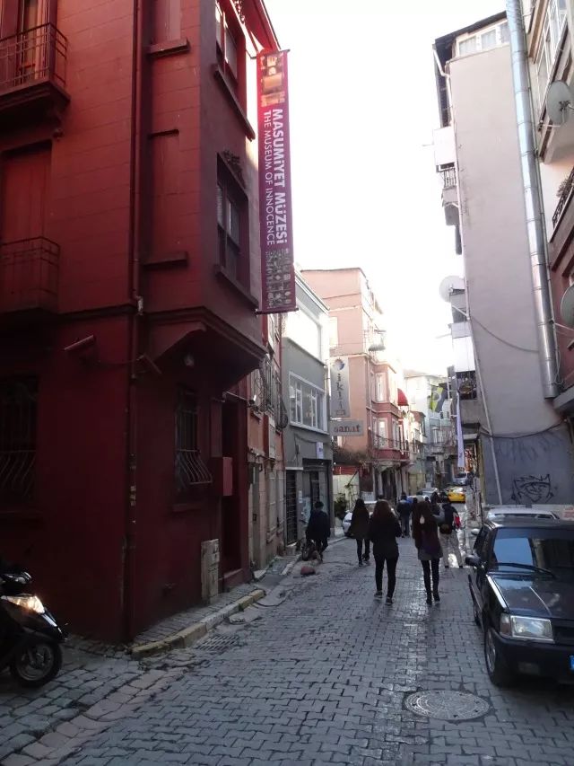 我住在历史悠久的伊斯坦布尔希尔顿酒店,恰巧也是小说里重要的场景之——凯末尔豪华的订婚宴在这里举行;他与芙颂梦寐以求但永远无法实现的婚礼,原本也计划在这里举行的。这里离帕慕克的旧居(帕慕克家族的公寓,以及隔壁那间小说里男女主角的“爱巢”)不远,走路十几分钟就到。我也到那条街上漫步,找到他在书中提到的公寓;还在街对面一家小餐馆的路边座吃了简单的午餐,喝了一杯土耳其红茶……那一带是新城区,也是高级住宅区,地势和房价都高;而“纯真博物馆”,也就是小说女主角芙颂的家,位于偏西南角库库尔库马区,地势低下,道路狭小曲折,崎岖不平。男女主角的社会和经济地位的差距可以实地感受体会。(不过无论在哪一区,散布全城的三千多座清真寺,都是一天五次、没有差别的以高分贝喇叭召唤祷告。)