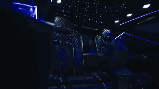 像可伸缩的4K高清电视、高保真音箱和卫星电话也是应有尽有,把车舱当成移动式家庭影院。