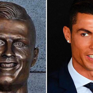 去年4月,C罗家乡马德拉将其机场正式更名为克里斯蒂亚诺•罗纳尔多机场,并在更名仪式上展示了这尊笑起来尴尬而不失礼貌的铜像。其独特的造型艺术风格打动了大批网友,深受粉丝们喜爱,并被做成了各种表情包(划掉)。