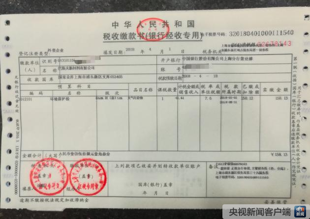 4月1日是环境保护税首个征期的第一天,当天上午,上海市浦东新区税务局开出我国首张环境保护税税票。