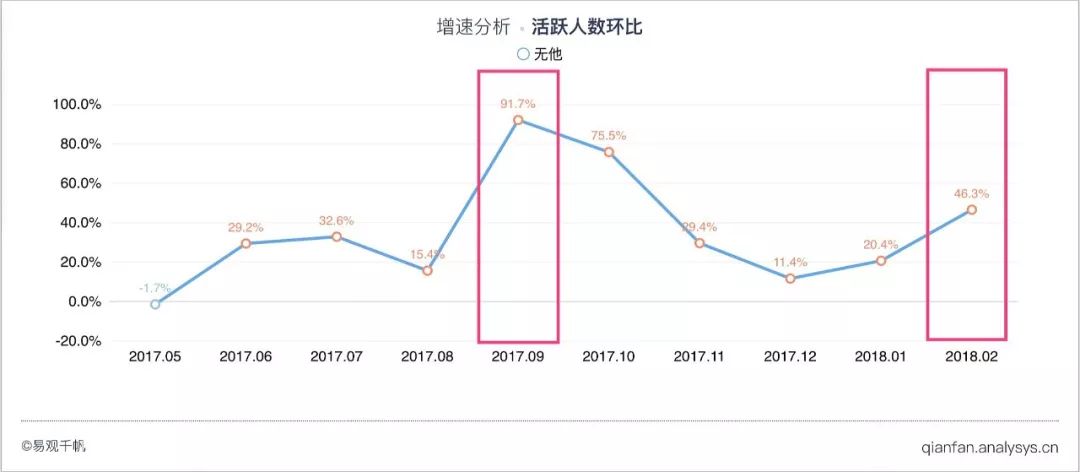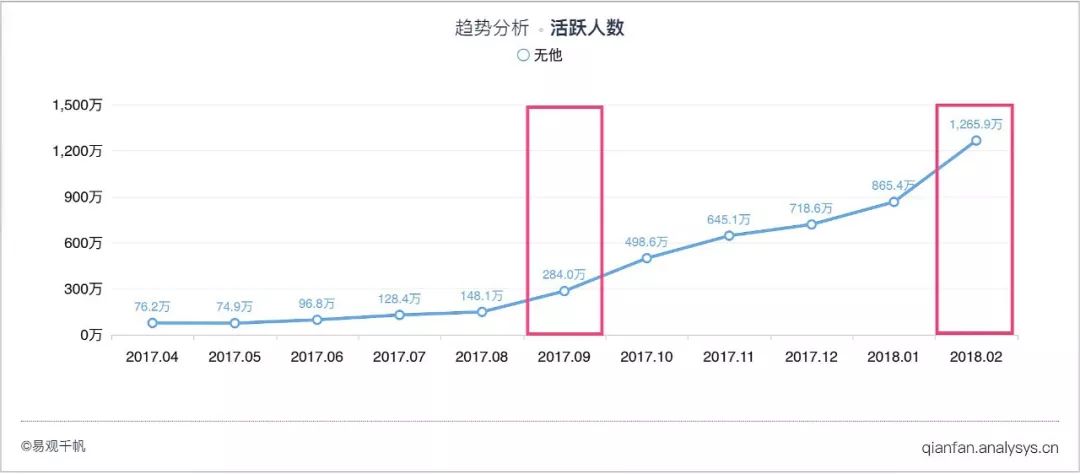 另一波较大的活跃增长是在今年2月。一方面是在2018年春节前后,无他相机赶在春节前其将版本更新,新增多格拍照并支持拍摄时后台音乐同步播放,产品功能适时的更新,满足了春节期间用户拍照社交的高频需求,不断丰富的产品功能也更容易在年轻人为主的社交圈子引爆。另一方面,今年1月底被天鸽互动斥资三亿收购80%股权,后者是在直播、短视频皆有深入布局的行业巨擘,在社交用户导流上,新的金主爸爸也能为其贡献不少流量。2018年2月,易观千帆数据显示,无他相机活跃用户规模1265.94万,环比增长达到46.3% 。