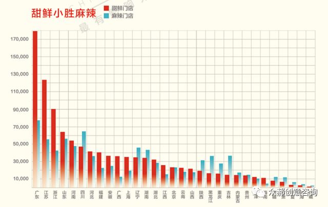 甜鲜口味与麻辣口味的门店变化统计。▲图片来源:2017年餐饮报告白皮书