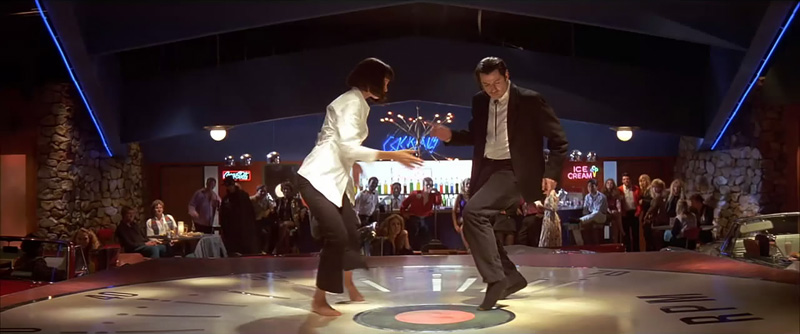 昆汀曾说:“我喜欢的音乐情节总是出现在戈达尔的电影里。它们无处不在,非常有感染力。”关于这段舞蹈,昆汀只对乌玛和约翰说了基本的感觉,然后让它们看了《不法之徒》中的跳舞场面,正式拍摄时全是两人即兴的。