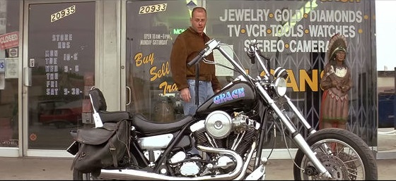 昆汀的浪漫真是别样的浪漫,Butch开走的摩托车上“grace”字样是昆汀拍摄此片时女友的名字,也有人说这里grace有“恩赐”的意思,意为Butch救人救己。