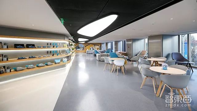 例如蔚来汽车的首家体验中心,就坐落在东长安街新天地商圈,两层展厅占地3000平米,不仅装饰豪华,还具有小型图书馆、儿童乐园、餐吧等诸多设施。从地段与装饰来看,这个展厅妥妥属于新造车公司第一壕展厅。