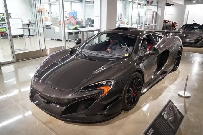 这是2015年迈凯伦P1,由迈凯伦设计总监弗兰克·斯蒂芬森打造,采用V8双涡轮引擎,最高时速217英里,最大功率903马力,售价130万美元。总共生产的375辆之中,168号非常独特,完全是碳纤维构造。。