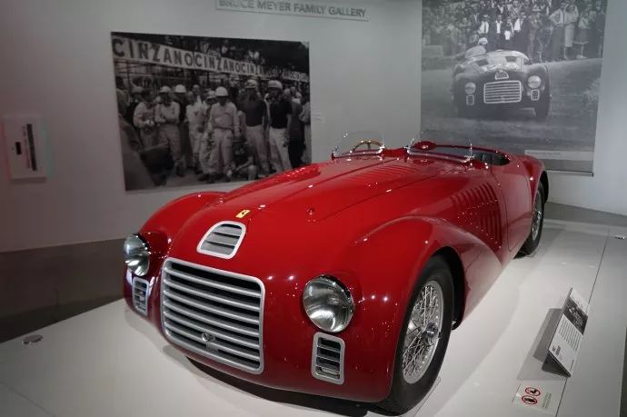 这是1947年的法拉利125S。当年,恩佐·法拉利在二战废墟上重建马拉内洛工厂,由于资金困难,他多方筹集以完成首款以他姓名命名的汽车,这款车装备了V12引擎。在首场皮亚森查赛道未能完赛,紧接着就在罗马卡拉卡拉赛道夺冠。