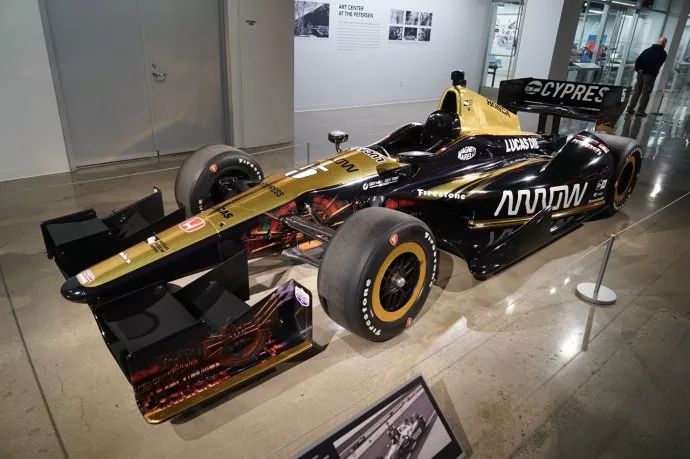 这是2015年Dallara-Honda车队参加印地方程式的赛车。2015年在印第安纳波利斯500分站赛练习赛上,车手詹姆斯·欣奇克利夫撞车,这辆赛车也就报废退役,之后经过修复陈列在此,但由于结构性损伤,无法再参加比赛。