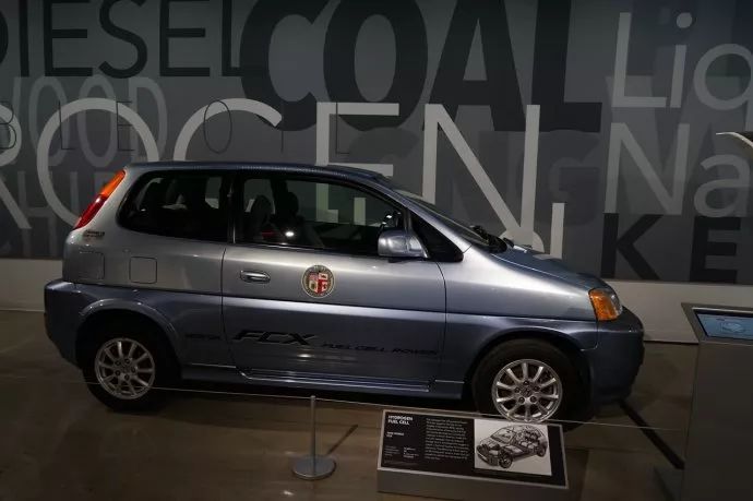 这辆本田的FCX燃料电池车,2002年底上市,是北美第一辆商用的燃料电池车。该车最高时速93英里,续航里程170英里,最大功率80马力。