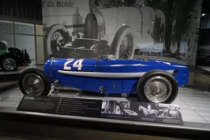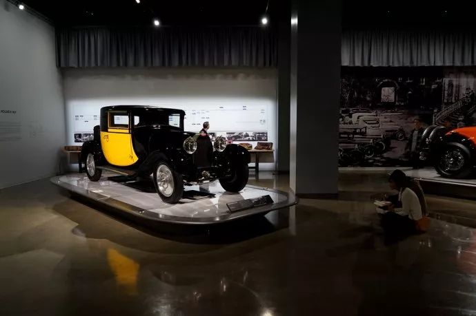最后回到一层,展厅以布加迪为主题。如今布加迪归于大众名下,车型少之又少,每年改变一点点。而二战前的布加迪,出产了多款出色的运动型车。那时候的布加迪,每辆车都透着优雅和动感。