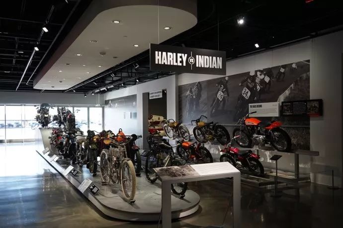 这里的展车是美国摩托车品牌哈雷和印第安的对决。