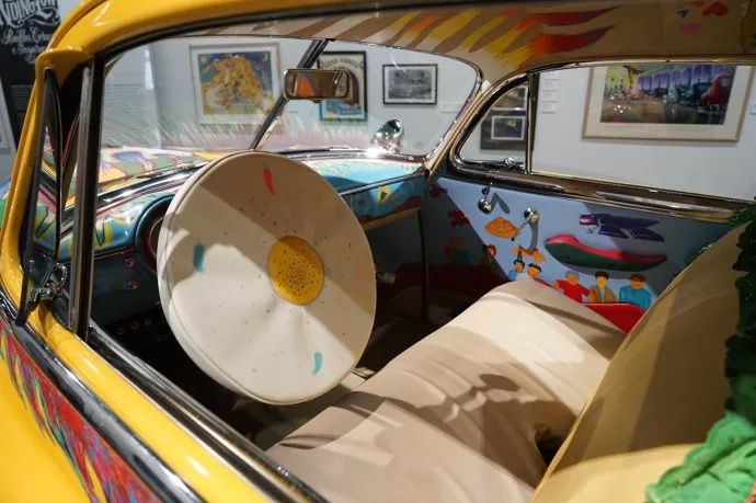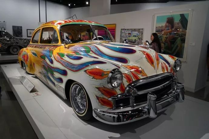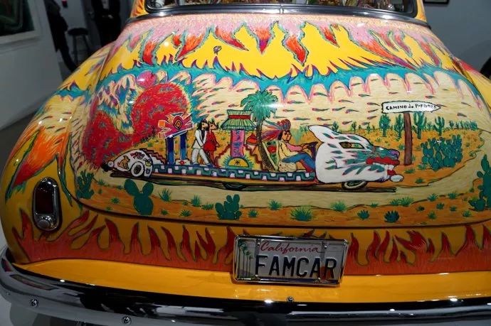 这辆涂满手绘的车名叫“我们的家庭用车”,1984年由Gilbert "Magu" Lujan设计,原车是1950年的雪佛兰Sedan。设计师称之为“轻松的民间艺术叙事”。这辆车底盘很低,是美国典型的改装风格,但是又融入了拉丁文化元素。全车上表现的元素,突出了墨西哥人吃的辣椒的一种热辣感。