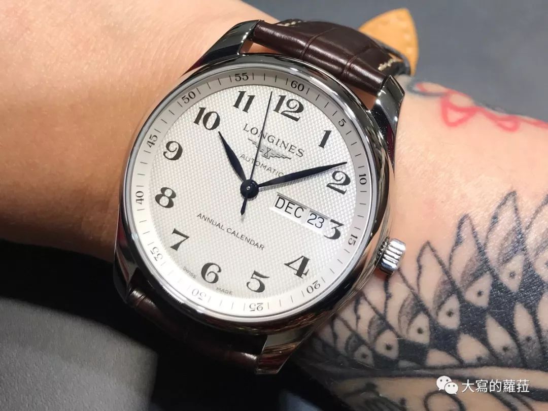 浪琴名匠系列特有的古典风貌,在年历腕表上则以经典麦穗纹装饰加上简洁的罗马数字石标搭配显示面盘,40毫米尺寸妥妥当当,从实用性上以及外型稳重的两大元素上,如此价格令人难以抵挡的诱惑下,可以说是2018年巴塞尔表展上新品性价比最高的腕表之一。
