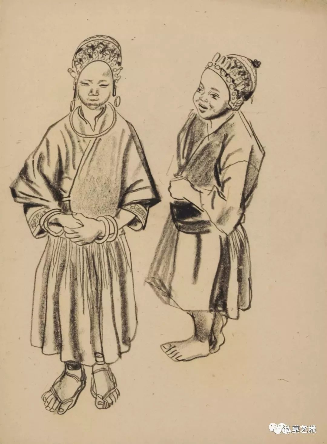 叶浅予 苗族女孩 1942年 纸本炭笔 38.5×27cm