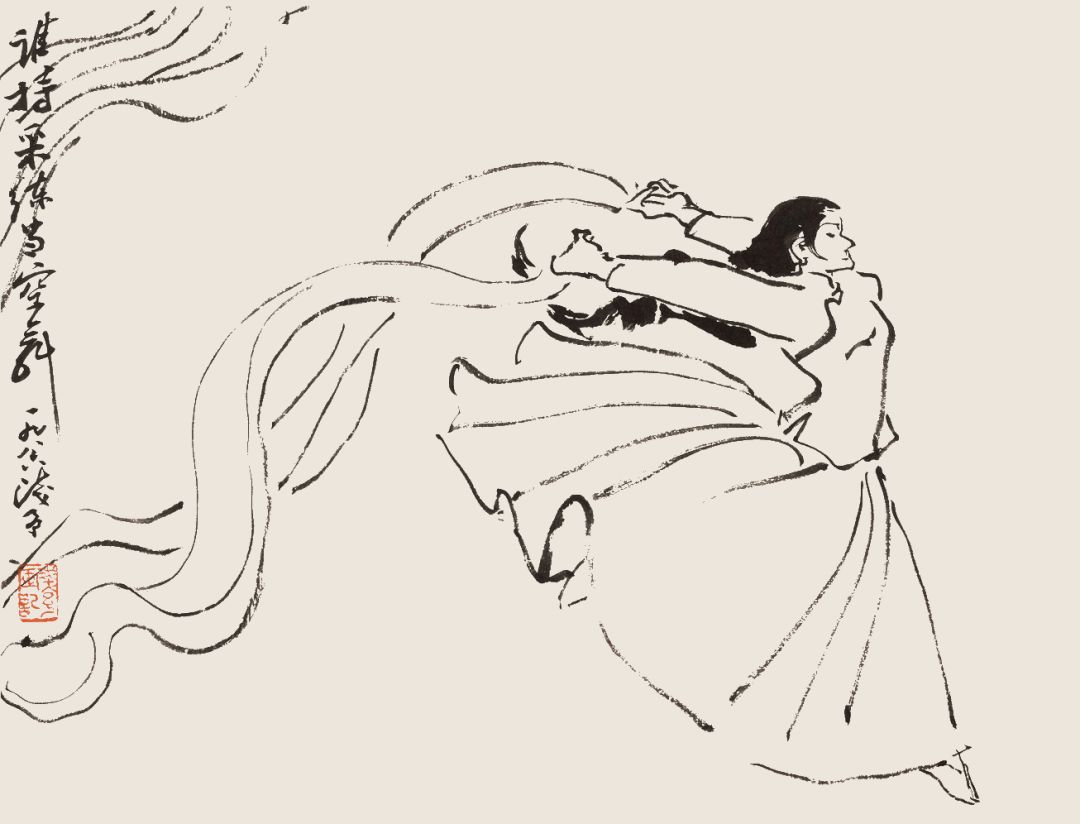 叶浅予 白描舞姿图册页之一 谁持彩练当空舞 1986年