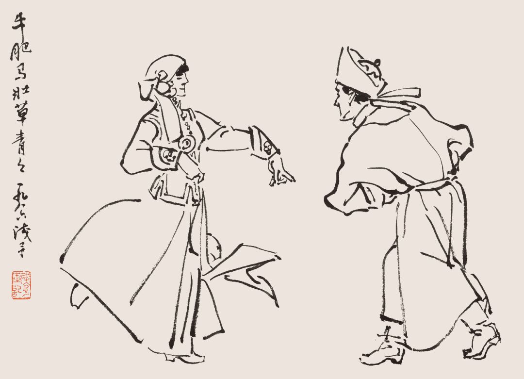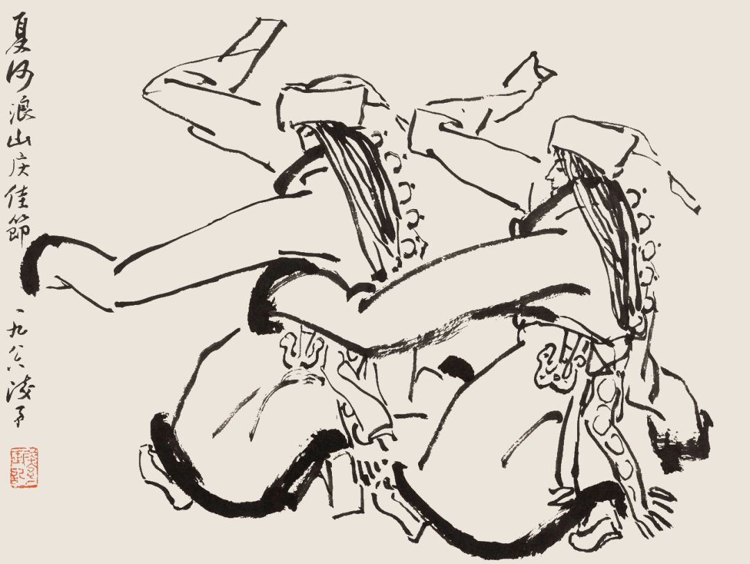 叶浅予 白描舞姿图册页之二 夏河浪山庆佳节 1986年