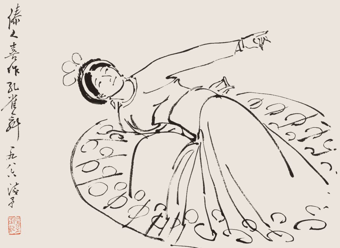 叶浅予 白描舞姿图册页之三 傣人喜作孔雀舞 1986年