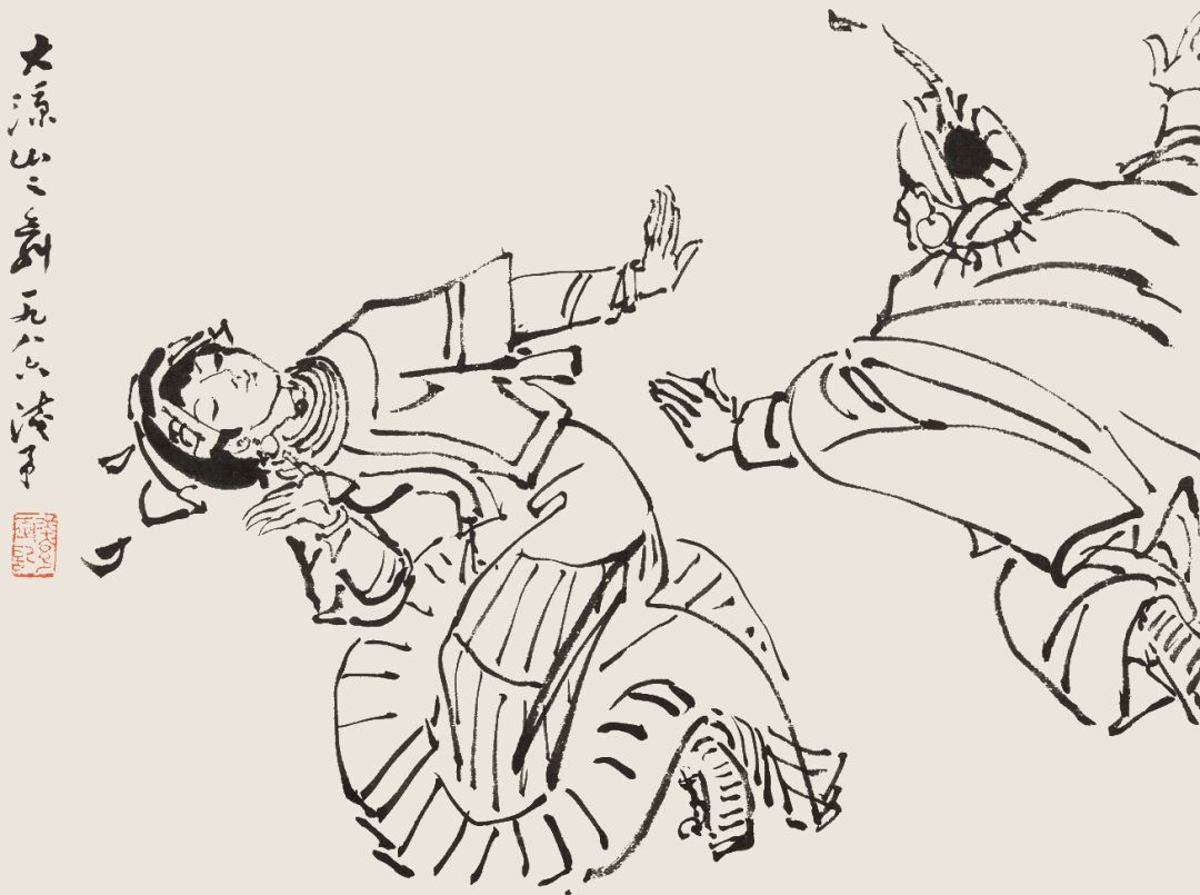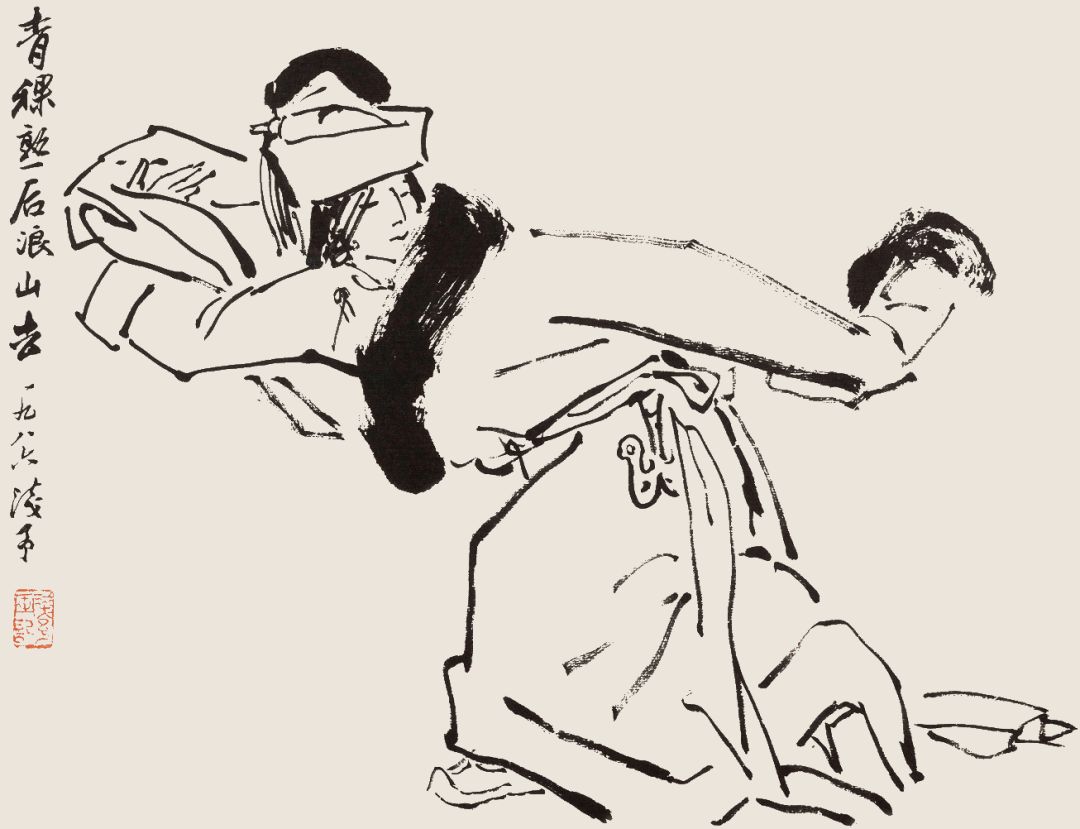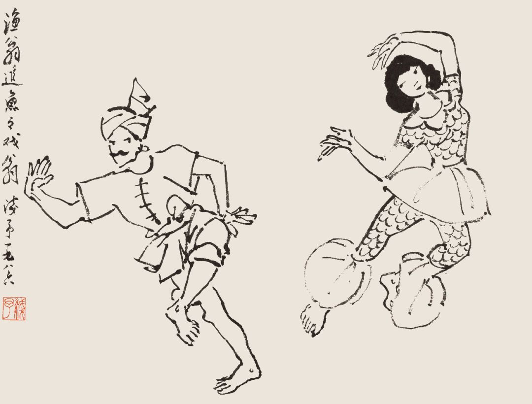 叶浅予 白描舞姿图册页之十 渔翁追鱼鱼戏翁 1986年