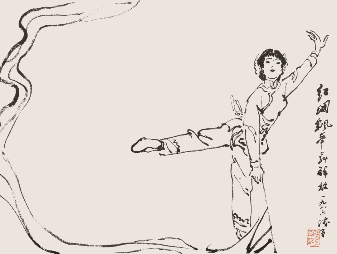 叶浅予 白描舞姿图册页之五 红绸飘举舞解放 1986年