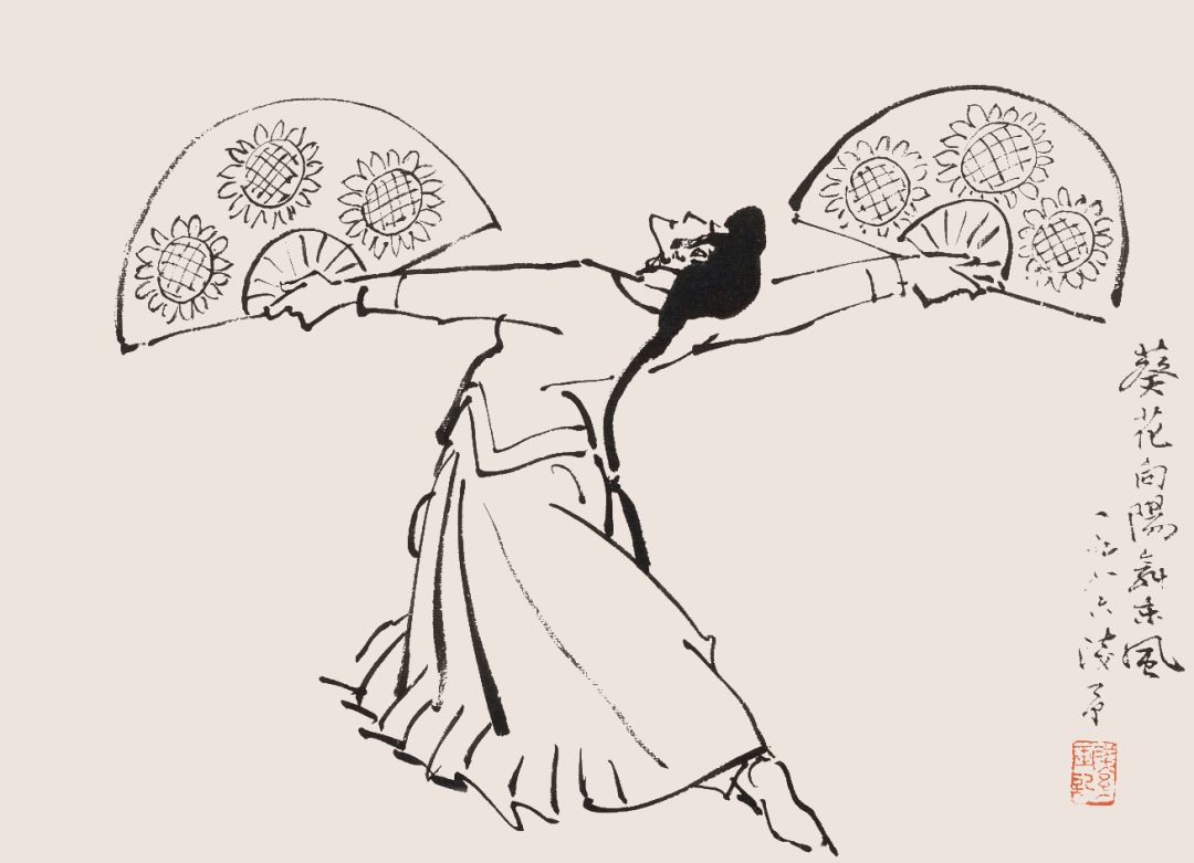 叶浅予 白描舞姿图册页之八 葵花向阳舞东风 1986年