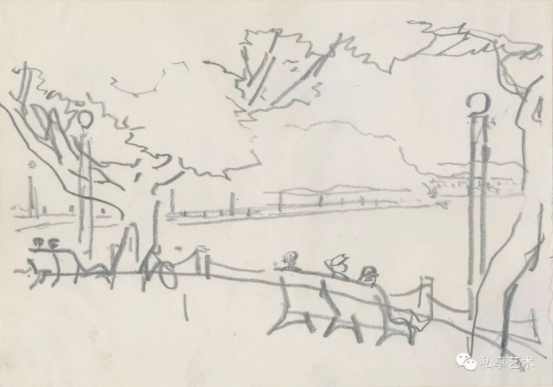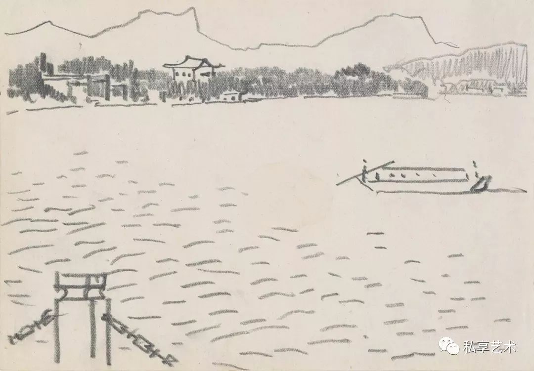 叶浅予 西湖系列一 1984年 纸本铅笔 15×21.3cm