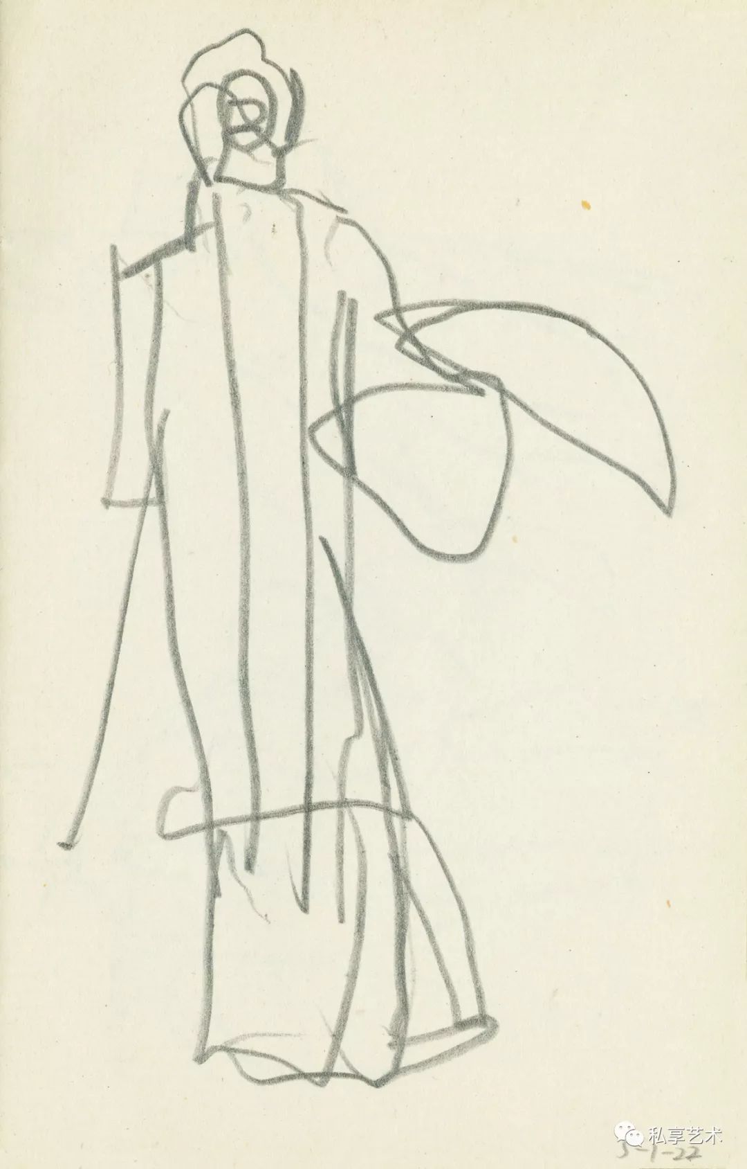 叶浅予 牡丹亭系列之二十 约1960年代 纸本铅笔 15.5×10.3cm