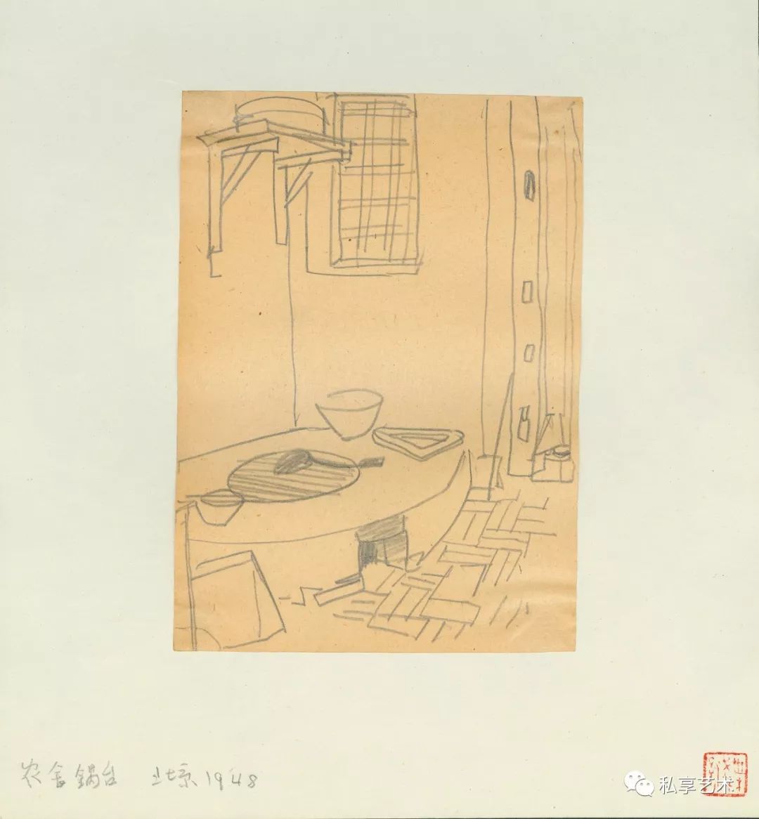 叶浅予 北京农舍锅台 1948年 纸本铅笔 18.1×13.1cm
