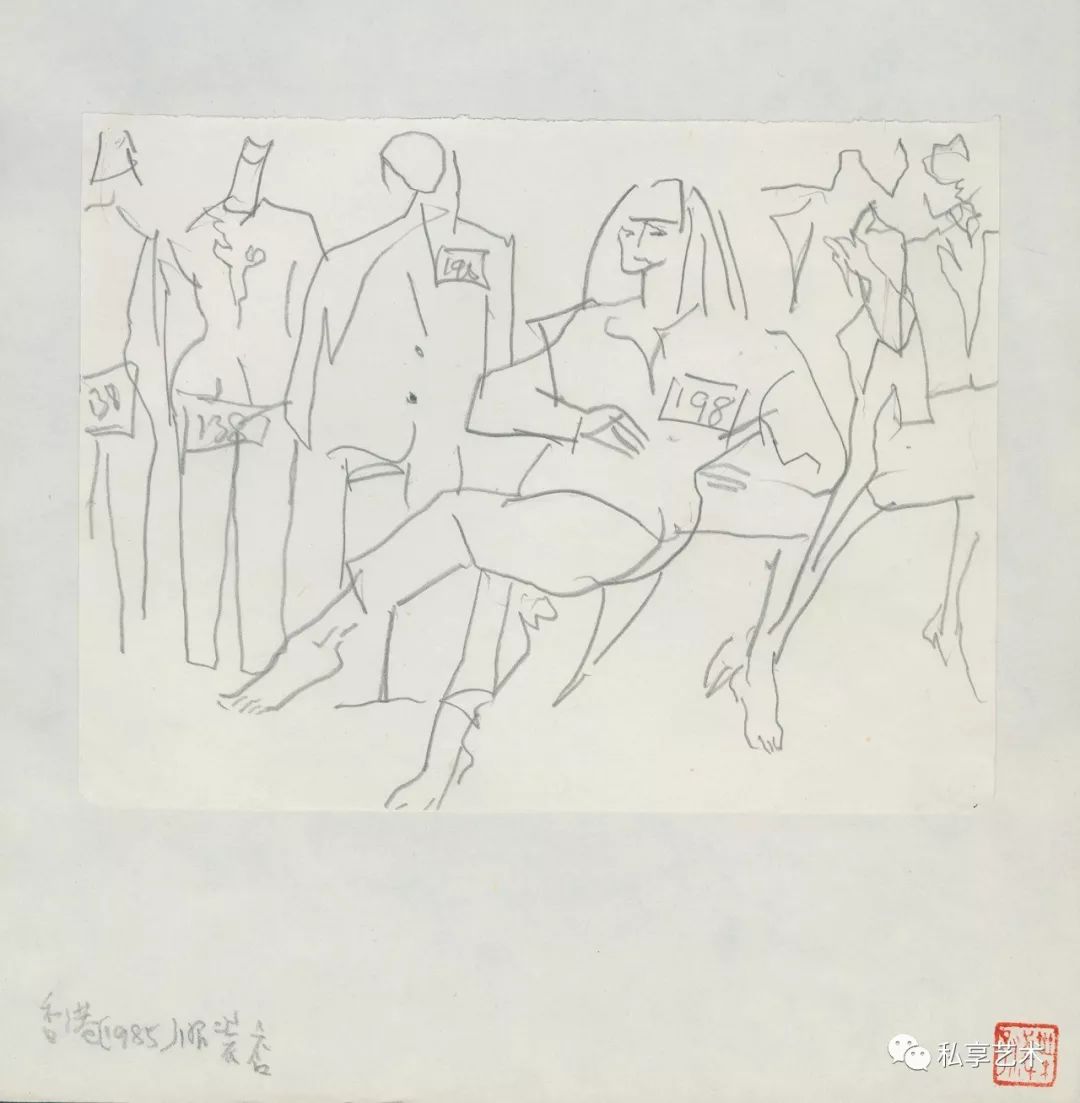 叶浅予 香港服装店 1985年 纸本铅笔 15.8×20.8cm