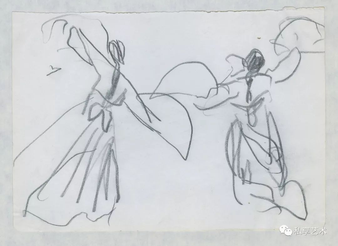 叶浅予 朝鲜双人扇舞 1977年 纸本铅笔 12.5×17.5cm