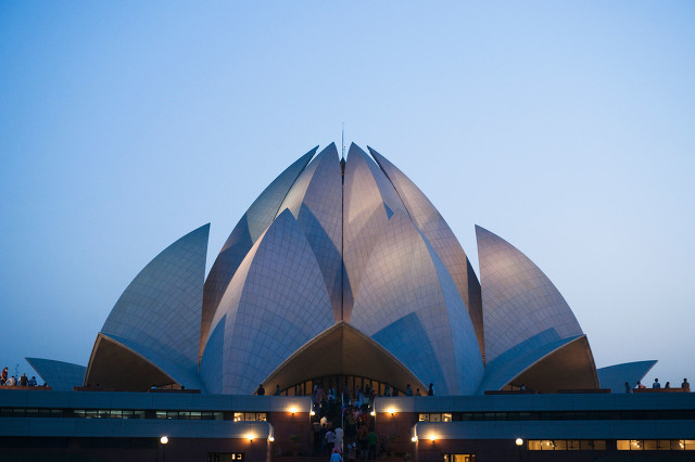 从远处看莲花庙就像悉尼歌剧院一样惹人注目,九边圆形和三组大理石花瓣组成了带着佛系禅意的莲花。走近了,庙宇给人的又感觉不一样,被水塘环绕特别有吸引力。安静地坐在里面,会忍不住赞叹它的简朴美丽。这是一个让人流连忘返的地方。