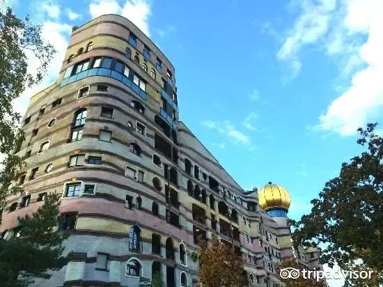 这是一座打破传统建筑审美的住宅,从它的名字里就能知道这座建筑与对称、简洁无缘。螺旋森林(Waldspirale)是一个包含105间公寓的12层螺旋斜坡建筑。建筑外墙装饰是用鲜艳的色彩绘成的不平整线条,屋顶和斜坡被树木和草地覆盖,形状不一的窗户从这些绿色植物的空隙里露出来,住在这里,真的就像住在浪漫的森林里一样。