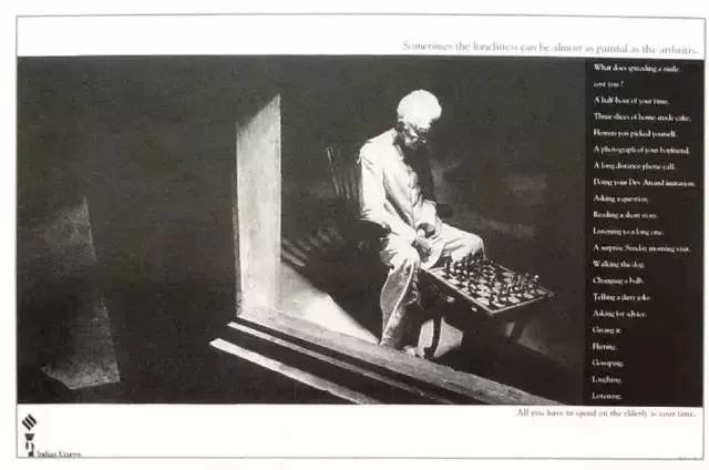 “孤独跟关节炎一样痛。”这是印度知名文案人Freddy Birdy的交出的答卷。他将孤独比喻为一种病痛——关节炎,这则比喻不是信手写出的,它的精髓在于洞察到了孤独和关节炎之间的共同点,比如,它们都在老年人这一群体普遍存在,比如,它们都是“慢性病”,不会要人命,但会带来长久的、难以根除的折磨。