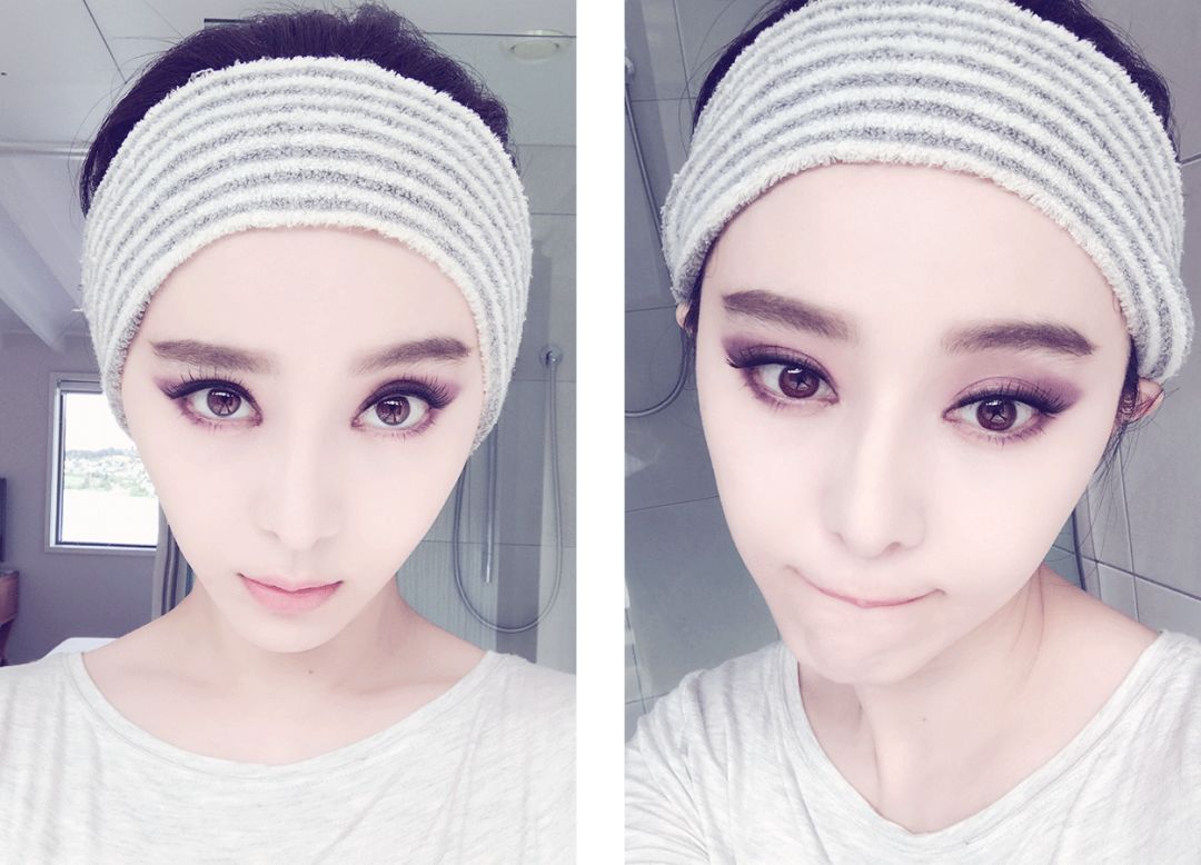 直到,我看到范冰冰的这组自拍……倒三角的脸被密密麻麻的五官装满。恩,这片披萨量很足。