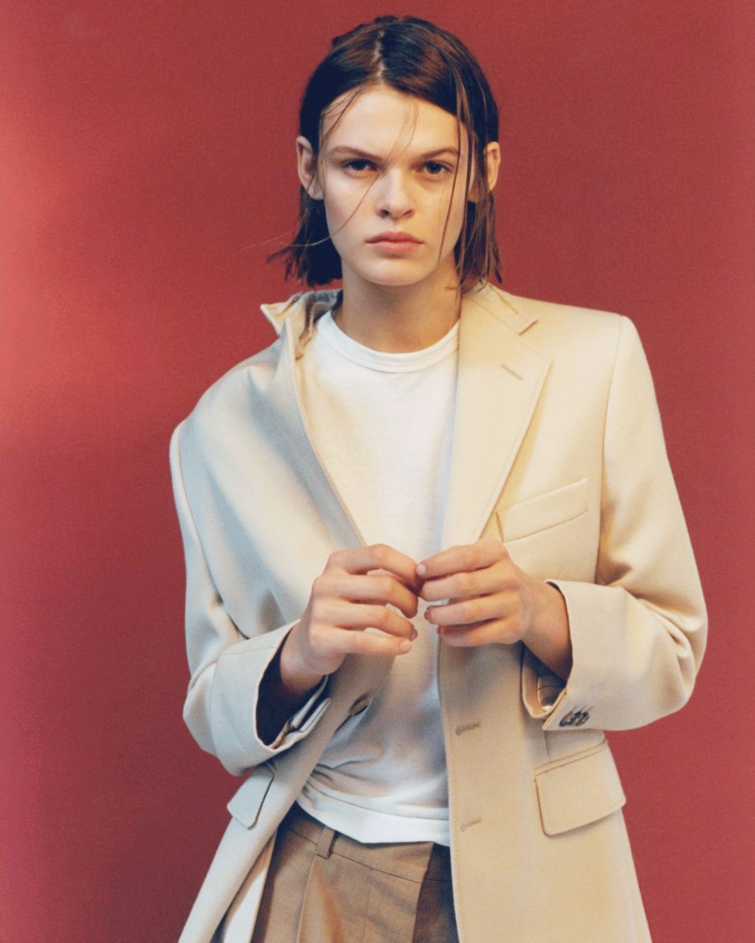 作为国内最适合穿Balenciaga的模特,汪曲攸的气质全靠方脸体现。