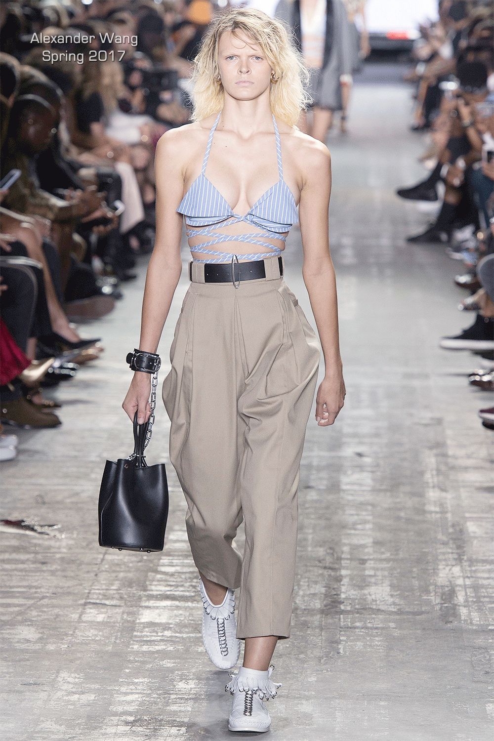 当年走Alexander Wang的秀一鸣惊人,来势汹汹的架势看着就不好惹,感觉下一秒可以转场《末路狂花》片场。